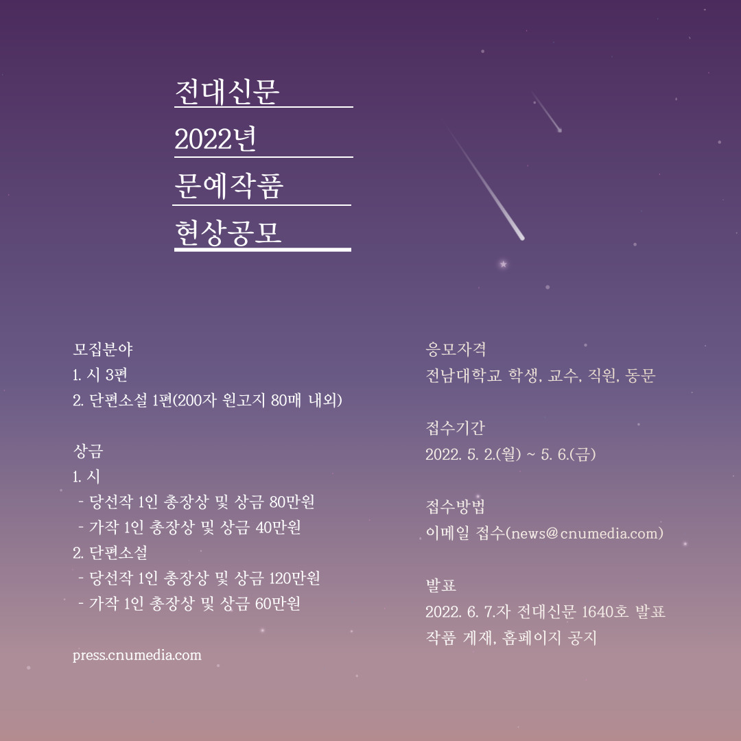 전대신문 2022년 문예작품현상공모 안내드립니다.