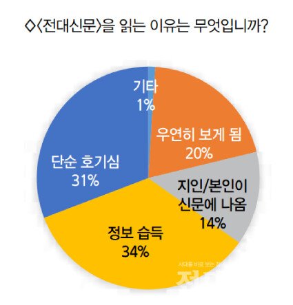 <전대신문> 읽는 이유, ‘정보습득’(34%) 제일 높아