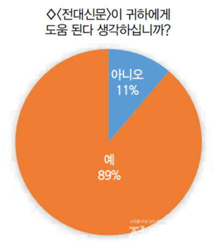 한 응답자는 “학교 생활과 관련된 정보들 외에도 흥미롭고 유익한 다른 정보들이 많이 들어 있어서 여러모로 도움이 된다”고 답변했다. 또 다른 응답자는 “대학에 다니며 <전대신문>을 읽지 않았으면 몰랐을 사실들, 기본적인 사실들을 알게 되었다”고 답변했다.