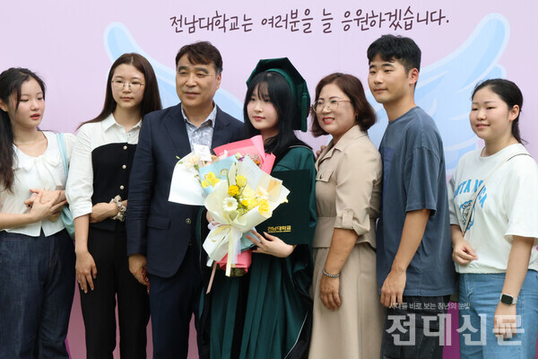 26일 후기 학위수여식에 참여한 졸업생이 5·18광장(봉지)에서 학위복을 입고 포즈를 취하고 있다. 제72회 2023학년도 후기 학위수여식이 이번달 26일 민주마루에서 열렸다. 이날 후기 학위수여식에는 학사 3,132명, 석사 775명, 박사 151명, 명예 학사 2명으로 총 4,060명이 학위를 받았다. 이의진 기자 213818@jnu.ac.kr 기자의 다른기사 저작권자 © 전대신문 무단전재 및 재배포 금지 개의 댓글 회원로그인 작성자 비밀번호 댓글 내용입력 댓글 정렬 최신순 추천순 답글순 BEST댓글 BEST 댓글 답글과 추천수를 합산하여 자동으로 노출됩니다. 닫기 더보기 댓글삭제 삭제한 댓글은 다시 복구할 수 없습니다. 그래도 삭제하시겠습니까? 비밀번호 닫기 댓글수정 댓글 수정은 작성 후 1분내에만 가능합니다. 본문 / 400 비밀번호 닫기 내 댓글 모음 닫기