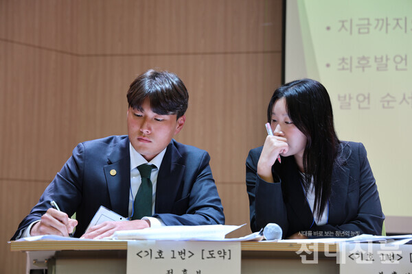 중앙선거관리위원회 주최로 열린 이번 토론회는 후보자의 △생각 차이 △문제의식 △논증을 유권자가 확인하여 선택의 질을 높이기 위해 개최됐다. △유 중선관위장 △도약 선본 김 정후보·정다은(국어교육·22) 부후보 △기억 선본 신 정후보·진영채(임산공학·22) 부후보가 참여했으며, 사회자의 질의 및 각 후보자 간의 상호 질의응답으로 진행됐다. 토론회는 지난 15일 19시 20분부터 제1학생마루 소강당에서 진행됐으며 인스타그램을 통해 온라인으로 실시간 송출됐다.