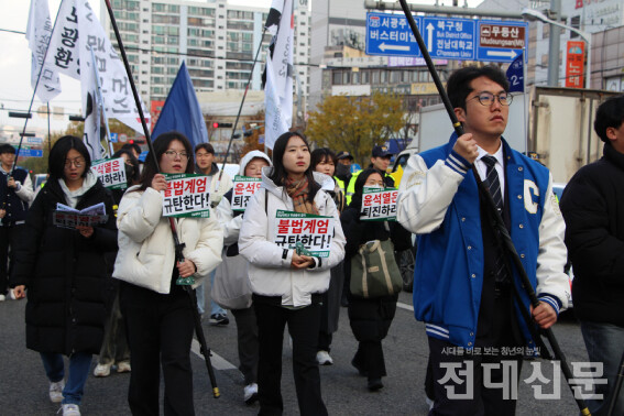 최서빈(일어일문·23)씨는 “이틀 전 열린 학생총회에 참여하고 싶었는데 일정이 맞지 않아 가지 못했다”며 “오늘은 꼭 참여해야겠다는 생각에 집회에 왔다”고 말했다. 조명인(문헌정보·24)씨는 “허리가 아파서 나올지 말지 고민했는데 이 시점에 당연히 나와야 한다는 생각에 참여했다”며 “오늘 재표결 때는 국회의원들이 제발 정신을 차렸으면 좋겠다”고 말했다.