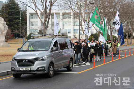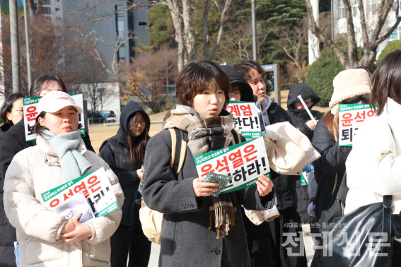 지난 14일 우리 대학 제1학생마루(1생) 앞에 약 서른 명의 학생들이 모였다. 윤석열 대통령 탄핵소추안 재표결까지 약 4시간가량 남았던 시간이었다. 이들은 궂은 날씨에도 불구하고 총학생회(총학)가 주최한 ‘12·3 비상계엄 대응 전남대학교 총집회’에 참여한 우리 대학 학생들로 대통령의 부당한 행태를 규탄하기 위해 나왔다.