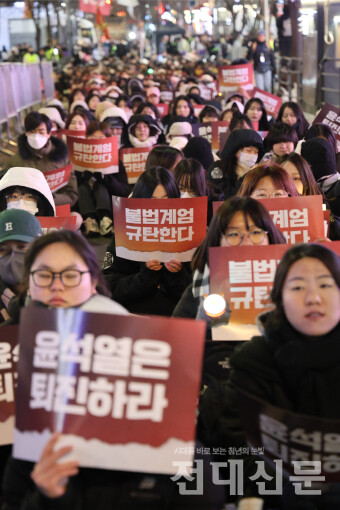 서울시립대 23학번 김가은씨는 "집에서 뉴스를 통해 실시간으로 상황을 지켜보는데 여의도 앞에 모인 국민들, 그분들을 위해 카페 선결제를 하는 분들 등 도움을 주는 분들이 너무 많았다"며 "집에 가만히 있지 않고 도움을 주고 싶다는 마음으로 집회에 나왔다"고 말했다.