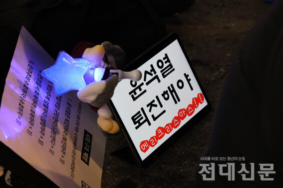 학생들은 각자 다양한 방법으로 집회에 참여하고 있었다. 거리 대부분을 채운 건 응원봉, 손팻말, 깃발 등 집회 물품을 손에 들고 “윤석열 퇴진”을 외치는 대학생들이었다. 가수 인피니트와 세븐틴 응원봉을 들고 온 서울대 장서연(공예·21)씨는 “학교에서 내려온 공문에 집회 반응 가능 물품으로 응원봉이 쓰여있었다”며 “밝은 무언가를 들고 와야 할 것 같아 응원봉을 들고 왔다”고 말했다.