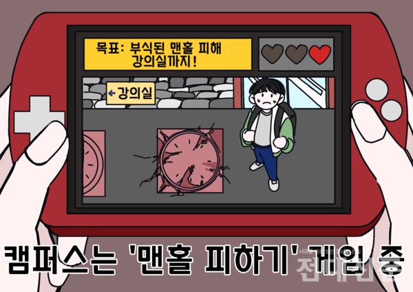 박서지(사학·22) news@cnumedia.com 기자의 다른기사 관련기사 갈라지고 구멍나고…캠퍼스 길 위협하는 ‘분홍 맨홀’ 저작권자 © 전대신문 무단전재 및 재배포 금지 개의 댓글 회원로그인 작성자 비밀번호 댓글 내용입력 댓글 정렬 최신순 추천순 답글순 BEST댓글 BEST 댓글 답글과 추천수를 합산하여 자동으로 노출됩니다. 닫기 더보기 댓글삭제 삭제한 댓글은 다시 복구할 수 없습니다. 그래도 삭제하시겠습니까? 비밀번호 닫기 댓글수정 댓글 수정은 작성 후 1분내에만 가능합니다. 본문 / 400 비밀번호 닫기 내 댓글 모음 닫기